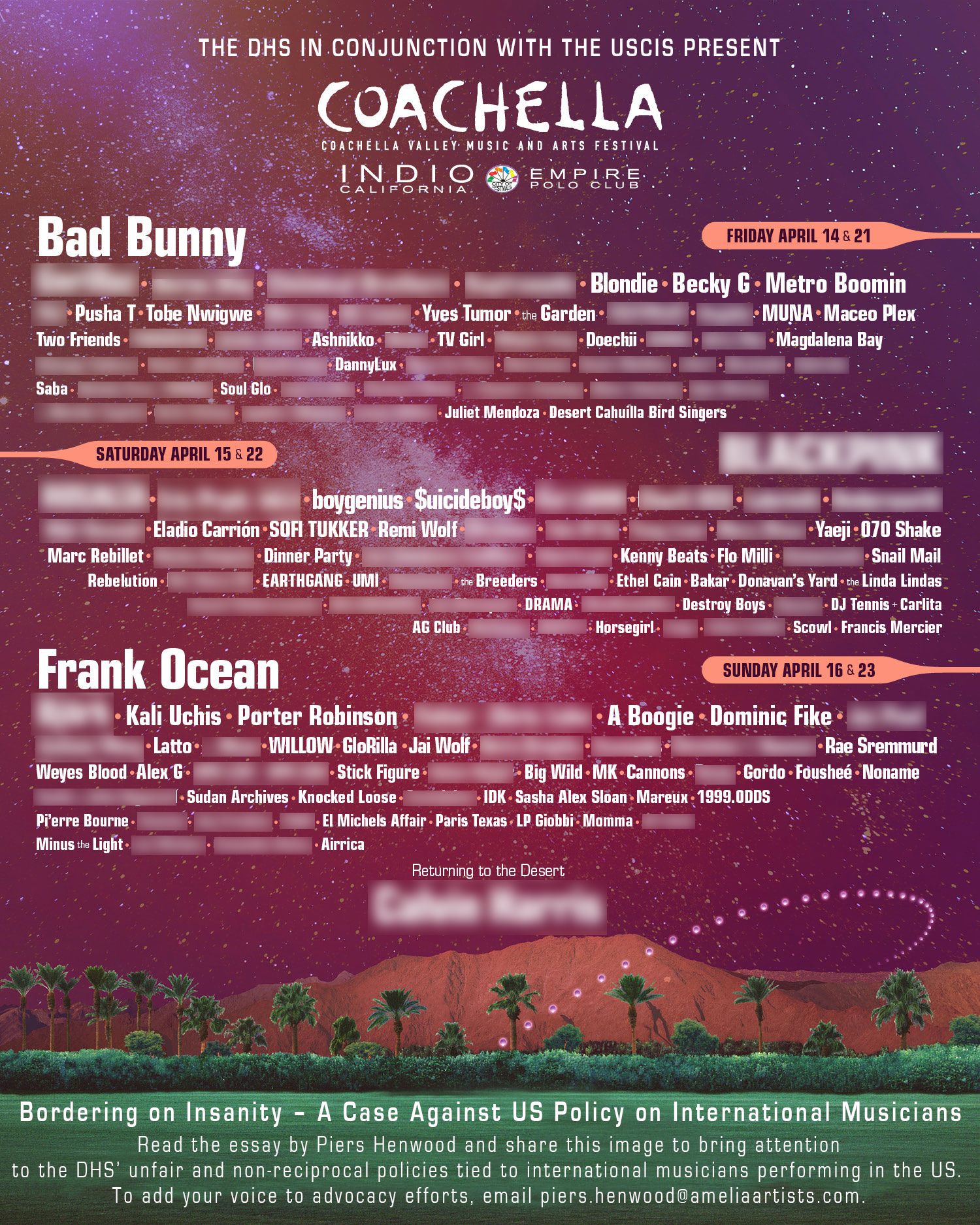 Were it not for the extensive and often exhausting administrative work done behind the scenes by the artist teams supporting international performers (managers, business managers, agents, and lawyers), the Coachella 2023 lineup would look vastly different. Indeed, the visual exercise of decapitating this year's line-up by removing foreign performers paints a very clear picture of how unfairly these artists are treated by the federal government given the significant economic and cultural value they bring to the U.S. market.